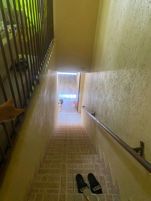 1° andar composto de 02 quartos, 01 sala, 01 cozinha, 01 banheiro, área de serviço, varanda, escada por fora de lateral,