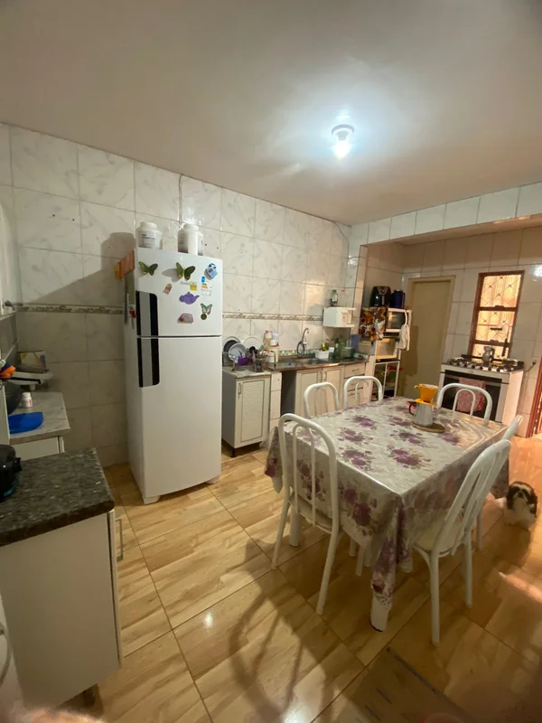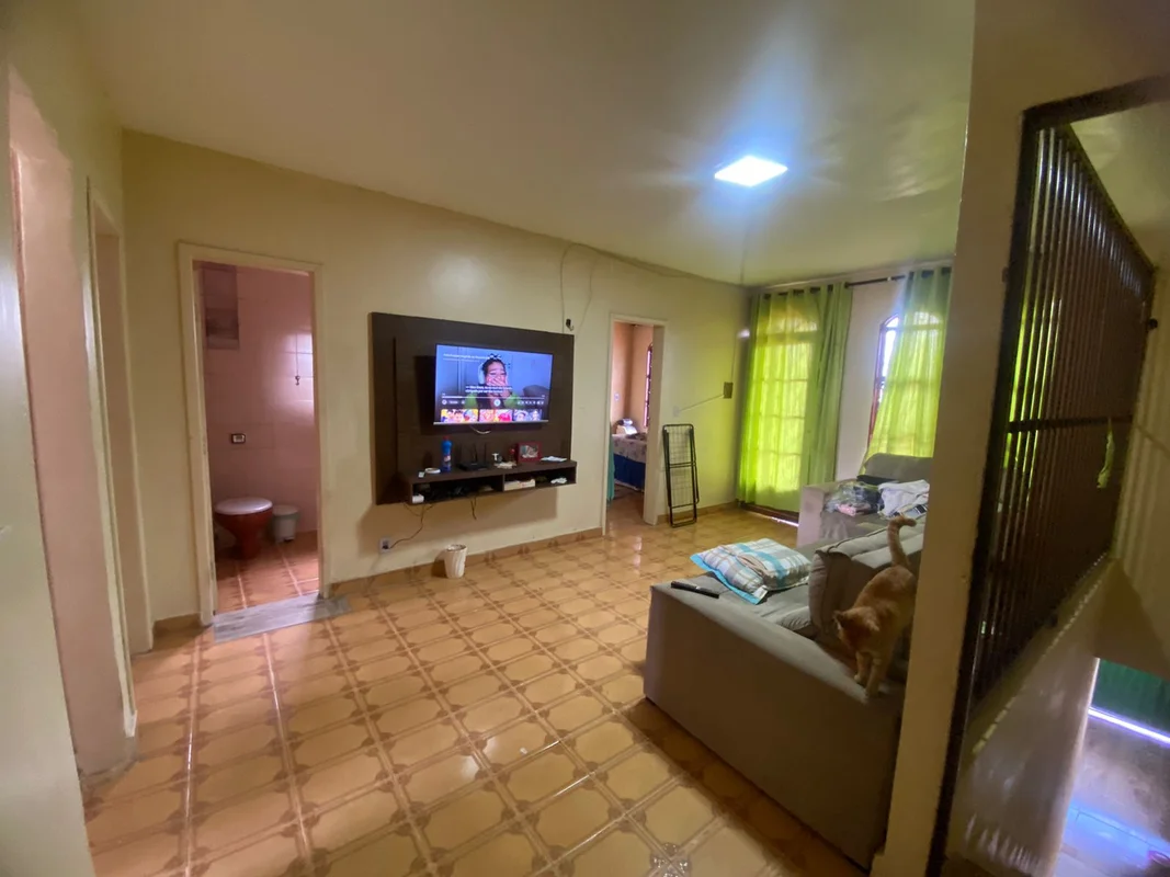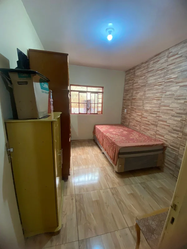 Possui casa térrea com porcelanato composta de 02 quartos, 02 banheiros sociais, 01 sala, 01 cozinha, 01 área de serviço,